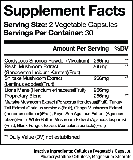 Unlock the power of nature with X MUSHROOMS™! A potent blend of 10 different mushrooms including Cordyceps, Lion's Mane, and Chaga, it boosts immune health, sharpens cognitive function, provides antiviral support, and regulates blood sugar. A natural solution for stress relief and enhanced exercise endurance.